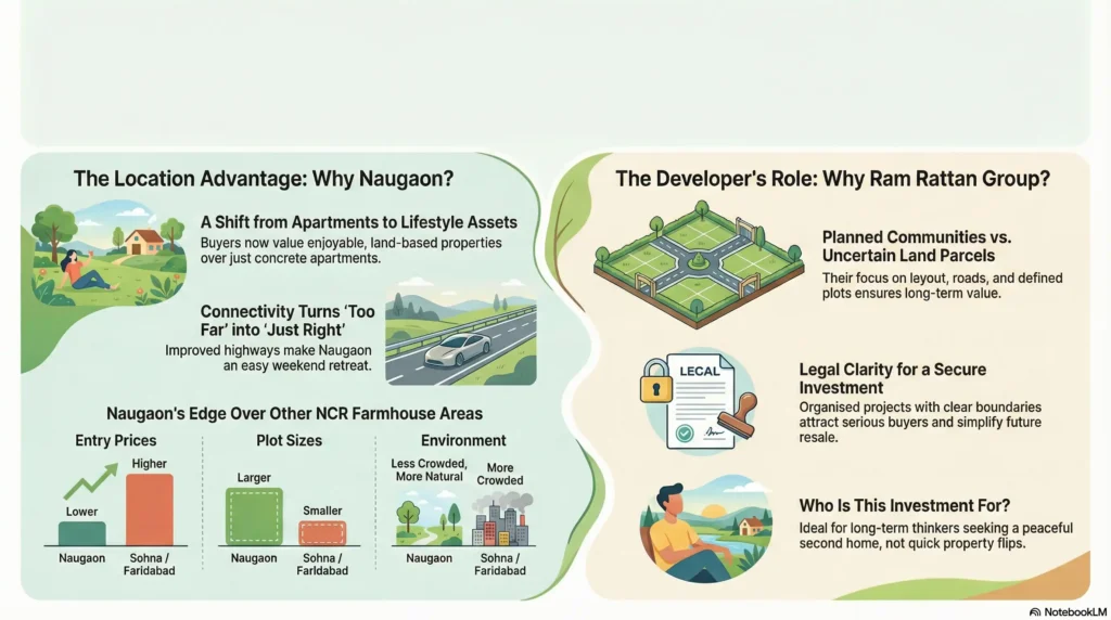 Among the names being discussed seriously by buyers is Ram Rattan Group Naugaon Farm House. Some see it as an opportunity. Others are unsure whether it’s the right time. If you’re planning ahead for 2026, this question deserves a clear, grounded answer—without sales talk.